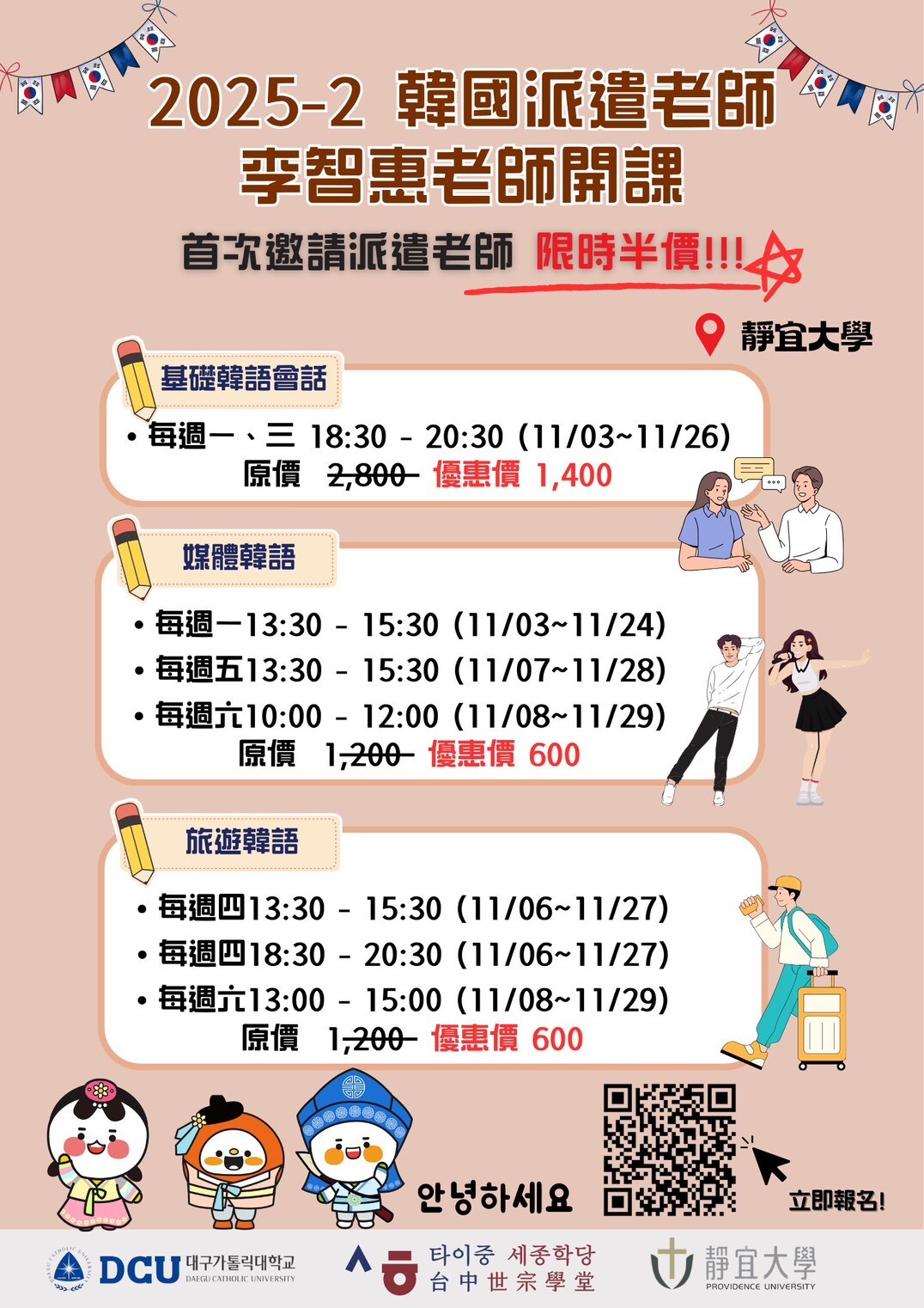 【台中世宗學堂】 韓國派遣李智惠老師課程 限時半價!!