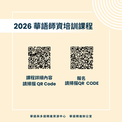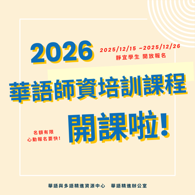 2026 年度 華語師資培訓課程 即日起開放報名!